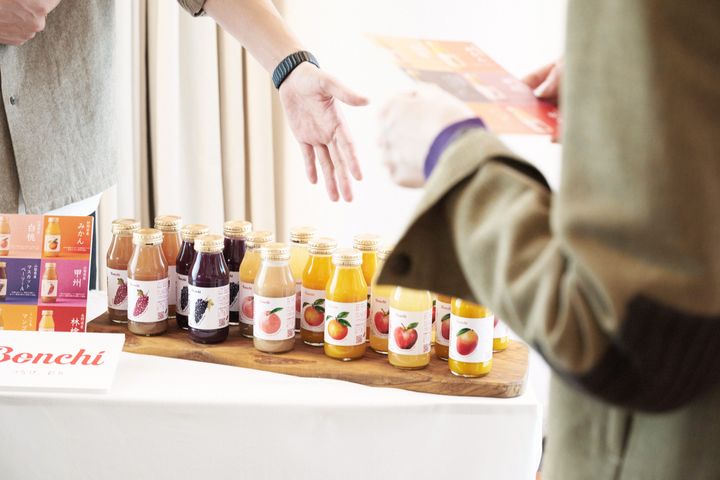 当日は、選べる5種の100%ストレートジュース(通常¥648~¥972/1瓶)の試飲が提供されました。