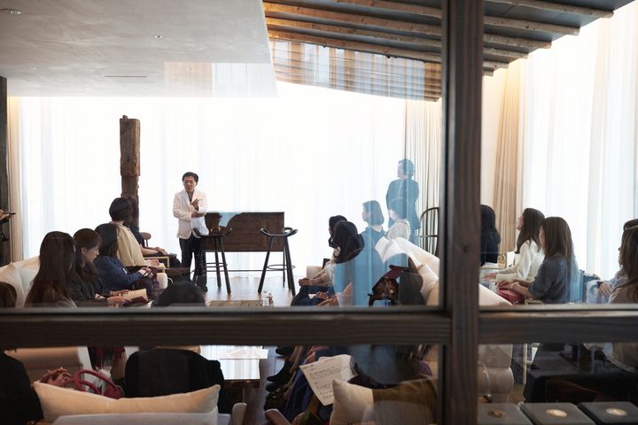 今回は特別にこのVIPルームを貸し切り、「THE HUNDRED ロンジェビティハウス」を支えるプロフェッショナルによる三部制のセミナーを実施。院長の髙戸毅先生、医師の松田明子先生、THE HUNDRED WELLNESS SALON 事業責任者の岩﨑佐代子さんが登壇し、「人生100年時代を美しく生き抜くために知っておくべきこと」「東洋と西洋の融合がもたらす可能性」「仕事のパフォーマンスを下げないために必要なこと」をテーマに、年齢を重ねるごとの心身の変化との向き合い方、先進的な医療の現在地、そしてウェルネスの最前線について語り合いました。