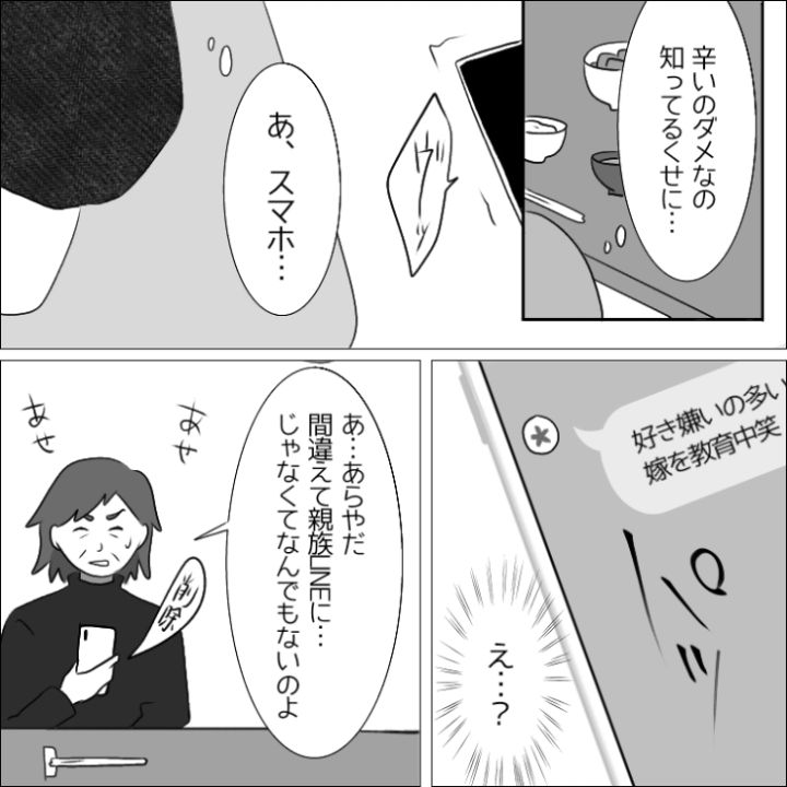 3. 「好き嫌いの多い嫁を教育してやってる」私が苦手と言ったものばかりを食卓に出す義母!わざとやってることを証明するためにあえて大好物を嫌いと伝えた結果・・・