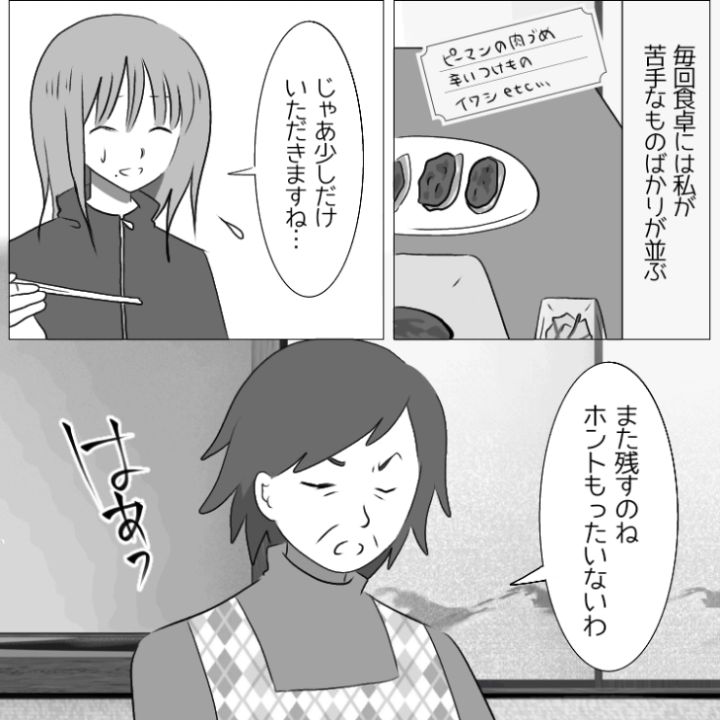 「好き嫌いの多い嫁を教育してやってる」私が苦手と言ったものばかりを食卓に出す義母!わざとやってることを証明するためにあえて大好物を嫌いと伝えた結果・・・