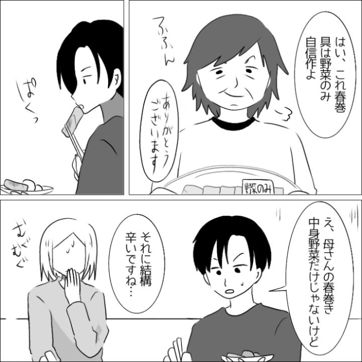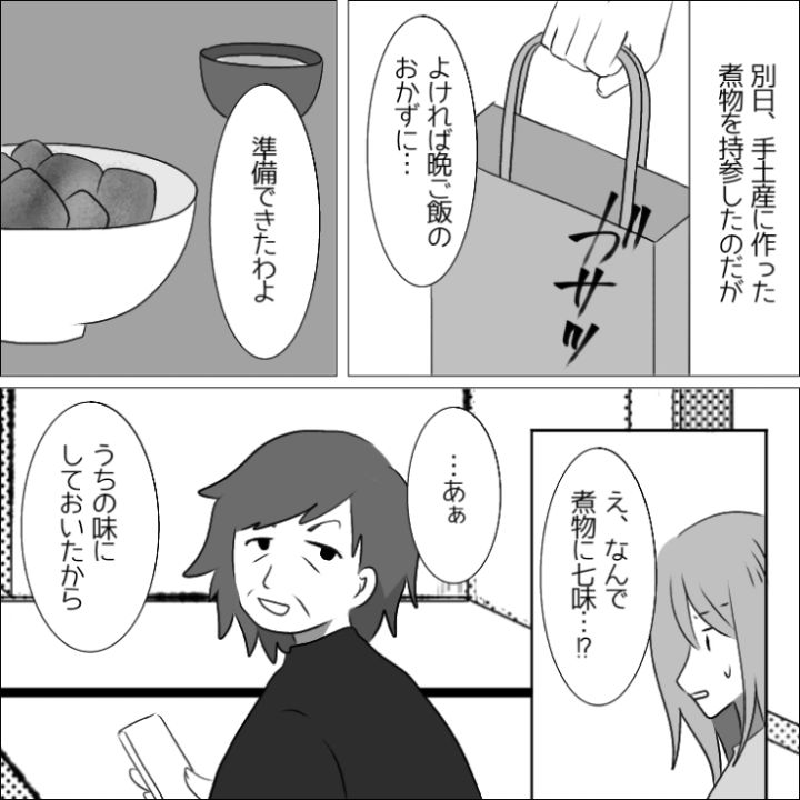 義母は主人公夫婦の近所にひとりで暮らしていて、寂しさからか頻繁に食事に誘ってくるのですが・・・。