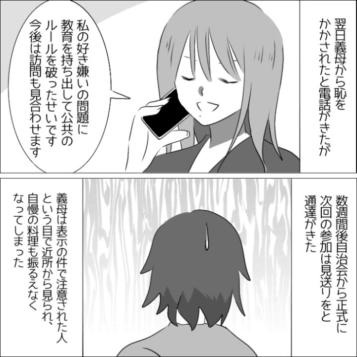 家の食卓だけでなく町内会まで巻き込んでしまった結果、孤立した義母。さすがに近所でも白い目を向けられるようになったんだとか。