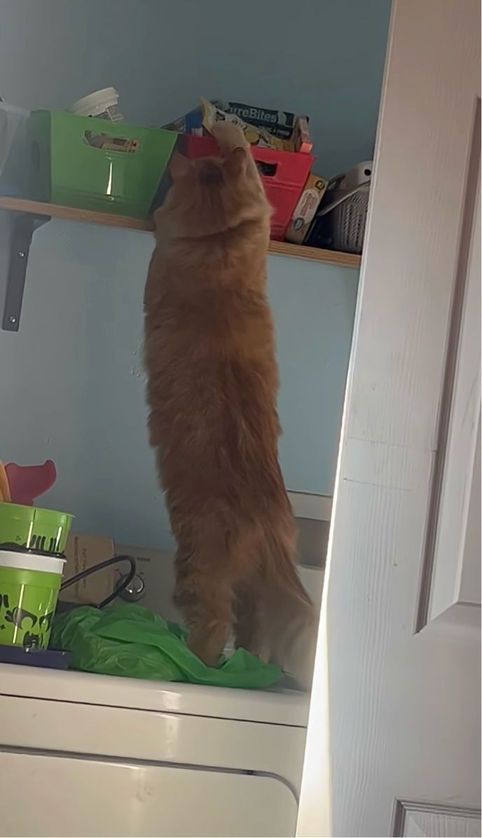 3. 棚の箱に入ったおやつをナイショで取ろうとしたけれど・・。ネコのイタズラを目撃!【アメリカ・動画】