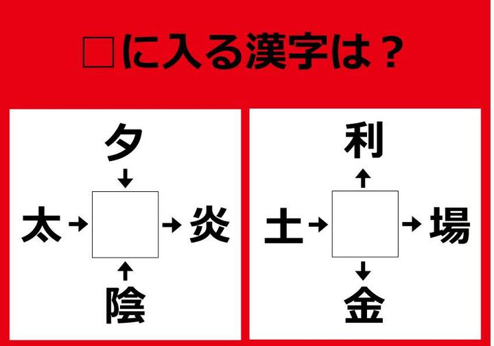 【漢字パズル】ヒントを参考に解いてみよう! 夕□、□炎、陰□、太□・・・!?