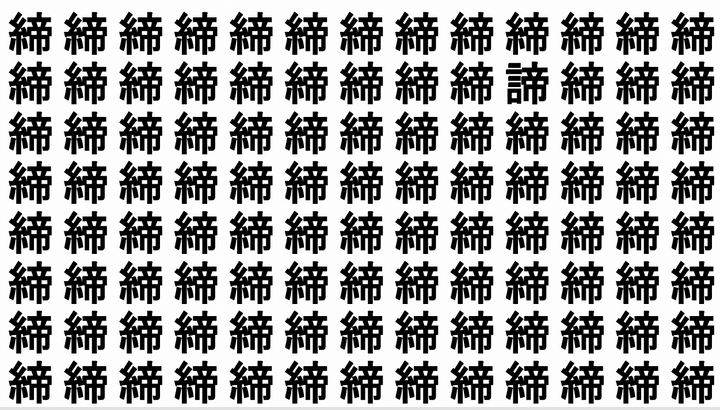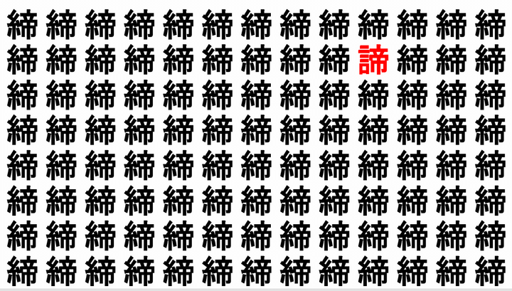 たくさんの「締」の中に、よく似た別の漢字が1文字だけ隠れています。