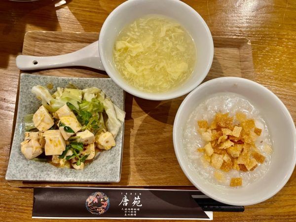 なんとランチセットを頼むとお粥・小菜・スープのバイキングがついているんです! そのためメインだけでも十分おなかがいっぱいになるのですが、お粥なども楽しむことができちゃいます。