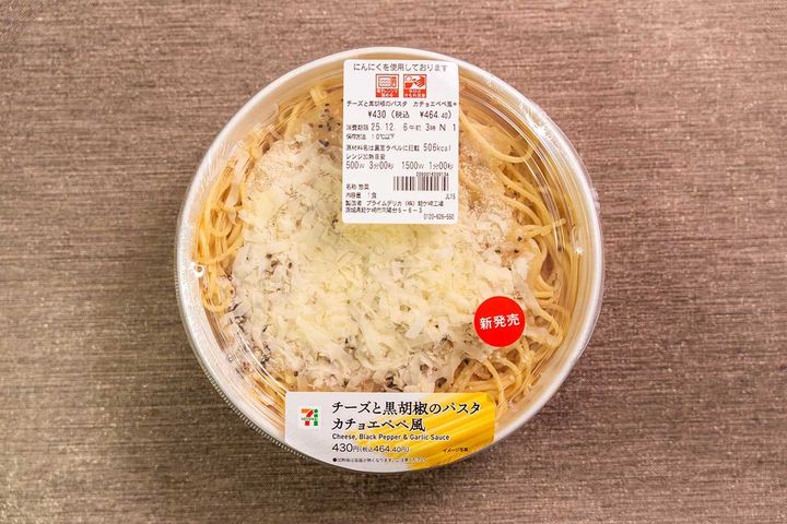 セブン-イレブンは2025年12月3日(水)に、「チーズと黒胡椒のパスタ カチョエペペ風」(税込464.40円)を発売しました。