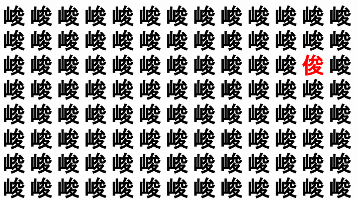 たくさんの「峻」の中に、よく似た別の漢字が1文字だけ隠れています。