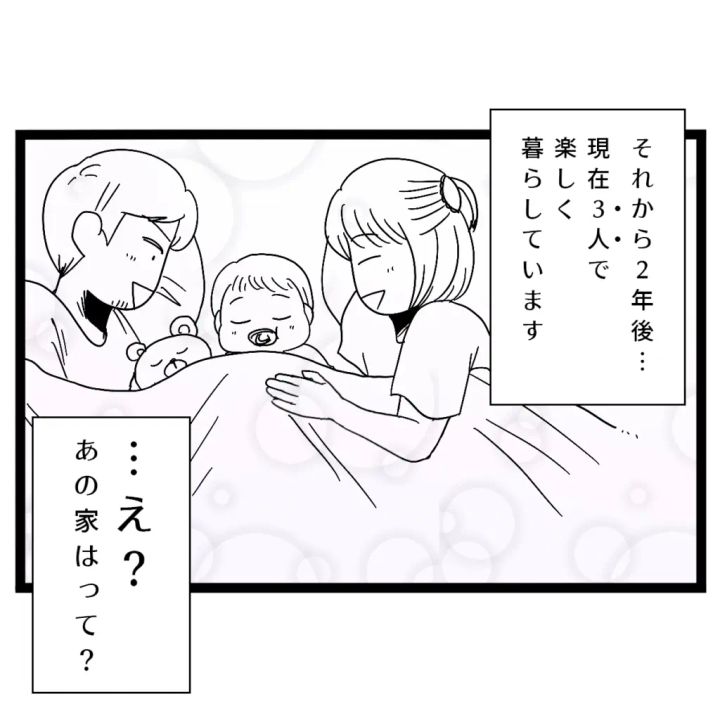 それから2年後。私たちは子宝に恵まれ、親子3人で楽しく暮らしています。タクヤもすっかり心を入れ替えて、家事に育児に父親らしく頑張ってくれています。今は賃貸暮らしですが、夢のマイホームに向けてコツコツ貯金する日々。