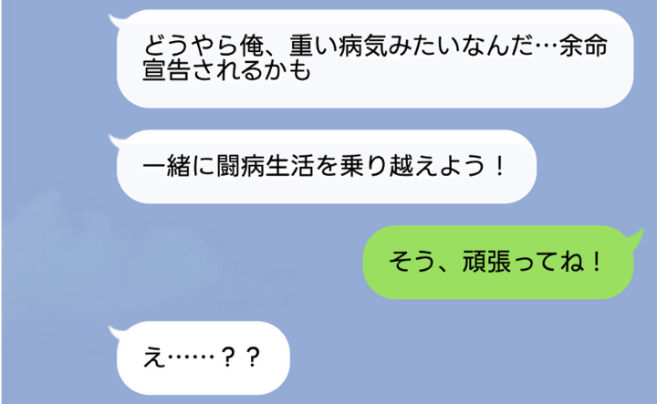 夫「余命宣告されるかも…一緒に闘病頑張ろう」私「そう、頑張ってね!」妻の冷たい返事に隠されていたのは