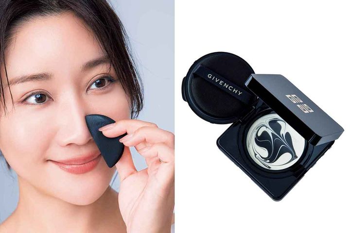 ベースメイクは保湿力重視で選びます。ジバンシイのソワン ノワール UV コンパクトは、美肌成分がたっぷり入っていて、表面のたるみからくるシワや毛穴が目立ちにくくなります。下地ひとつ変えるだけで見違えます!付属のパフでくるくるとうるおいを埋め込むイメージで塗るのがおすすめ。長時間、メイクが崩れません!