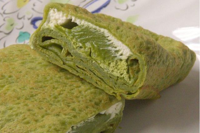 抹茶クレープ生地で抹茶とマスカルポーネを包んであります。