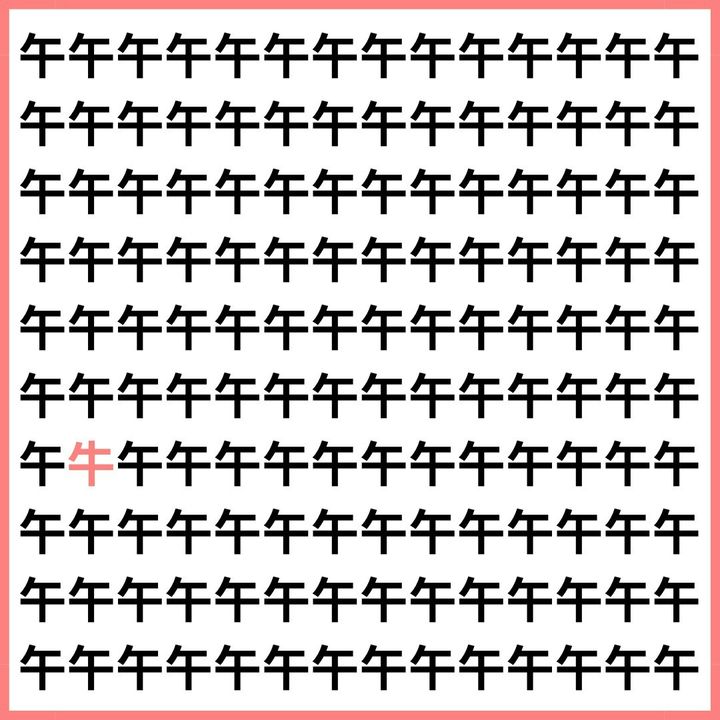 たくさんの「午」の中に、1文字だけ違う漢字が混ざっています。