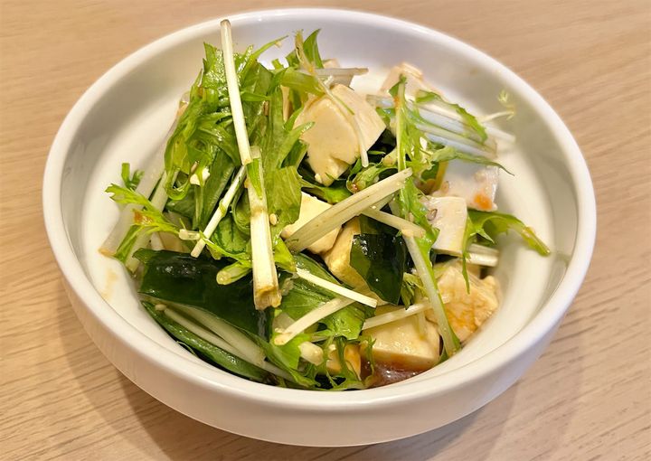 シャキシャキの水菜に、つるんとした豆腐とわかめ。食感の違いが楽しく、噛むたびにリズムが生まれます。