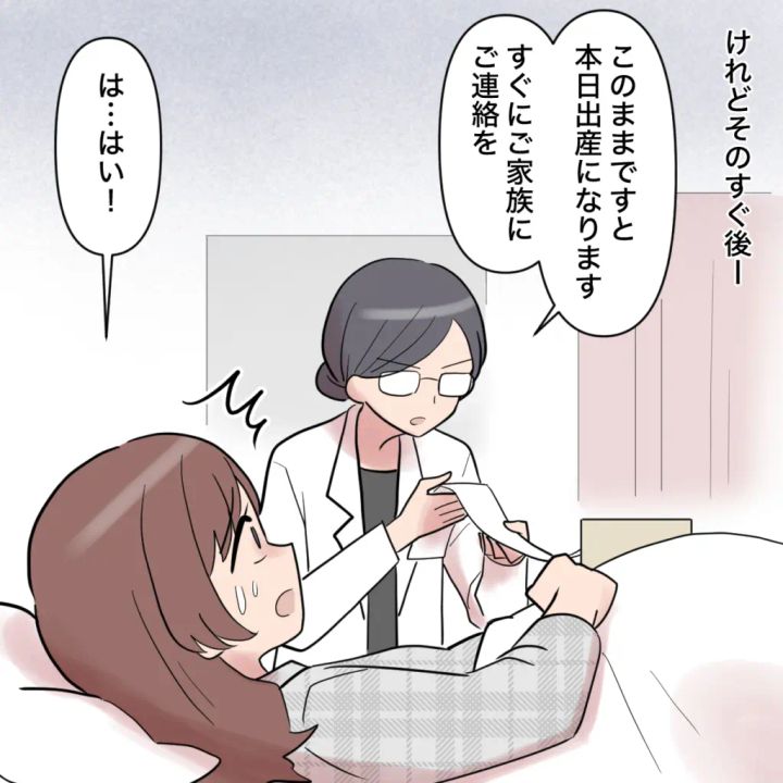 でもそのすぐ後に・・「このままですと本日出産になります。すぐにご家族に連絡を」そう言われ、「は・・はい”」と急いでトモヤに電話することに!