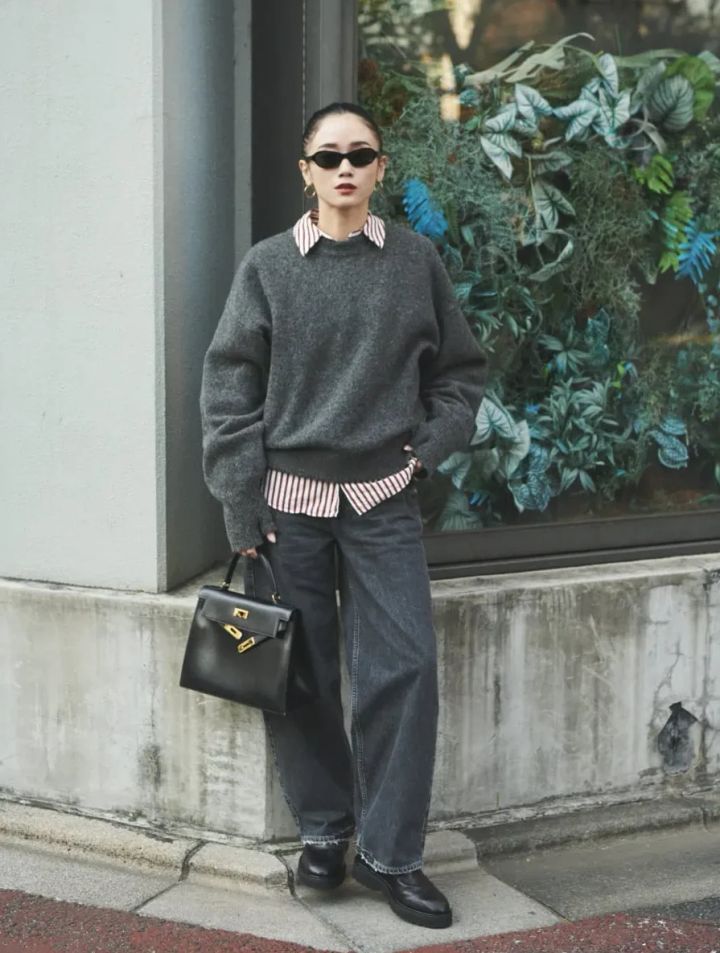 カジュアルなデニムスタイルに合わせるのは、1950年代半ばにモナコ公妃となった女優のグレース・ケリーが愛用していたことで、その愛称がついたバッグ「ケリー」。あえて留め具を外し、ラフに持つことでスタイリングに馴染みます。