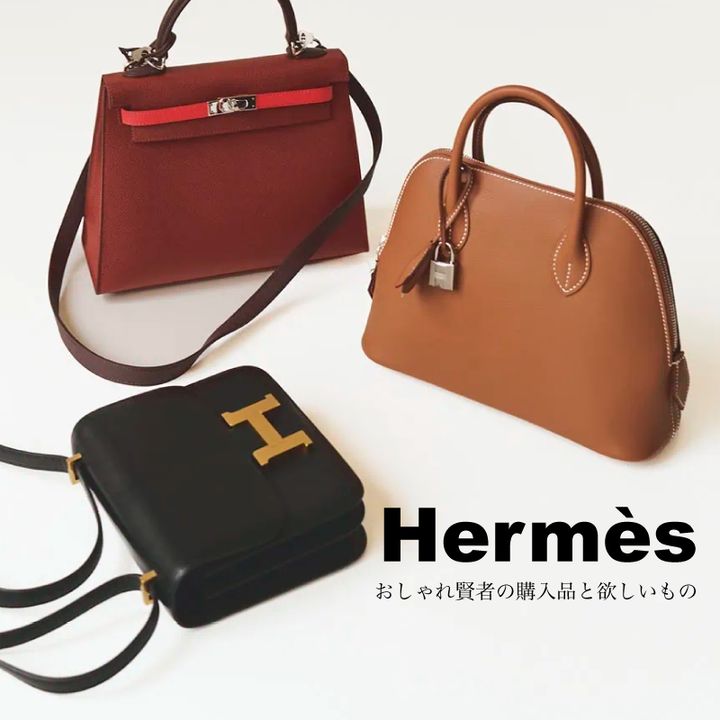 HERMÈSのバッグ 右から時計回りに:タイムレスなデザインのボリード、どんなコーデにも合わせやすいコンスタンス、キレイな配色のケリーは本人私物