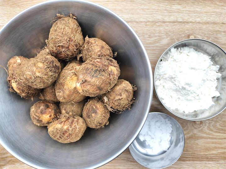3. 【絶品!郷土メシ】福岡・八女の「芋まんじゅう」作ってみた!芋は芋でも里芋!?粉で包んで茹でるだけ