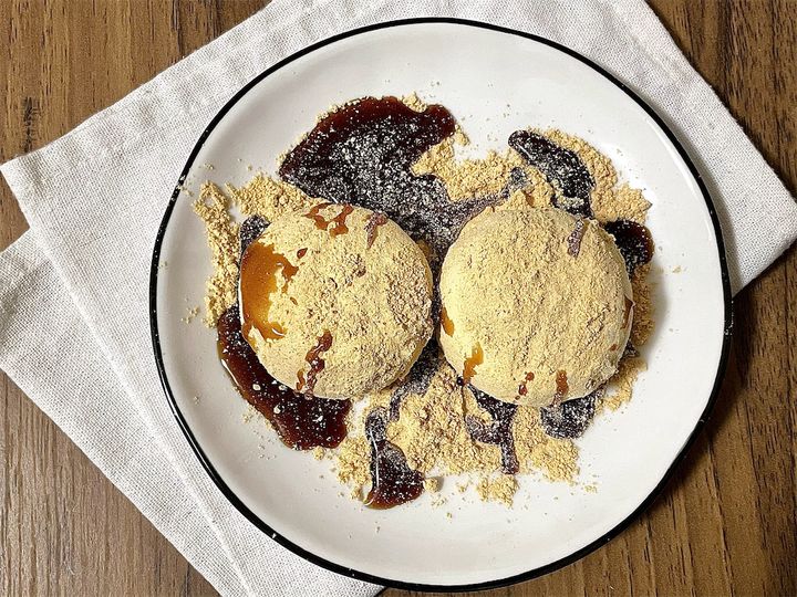 雪見だいふくの餅部分にきな粉と黒蜜が絡みつき、モチモチの食感と、きな粉と黒蜜の文句のない組み合わせで、贅沢な気分を味わえます。