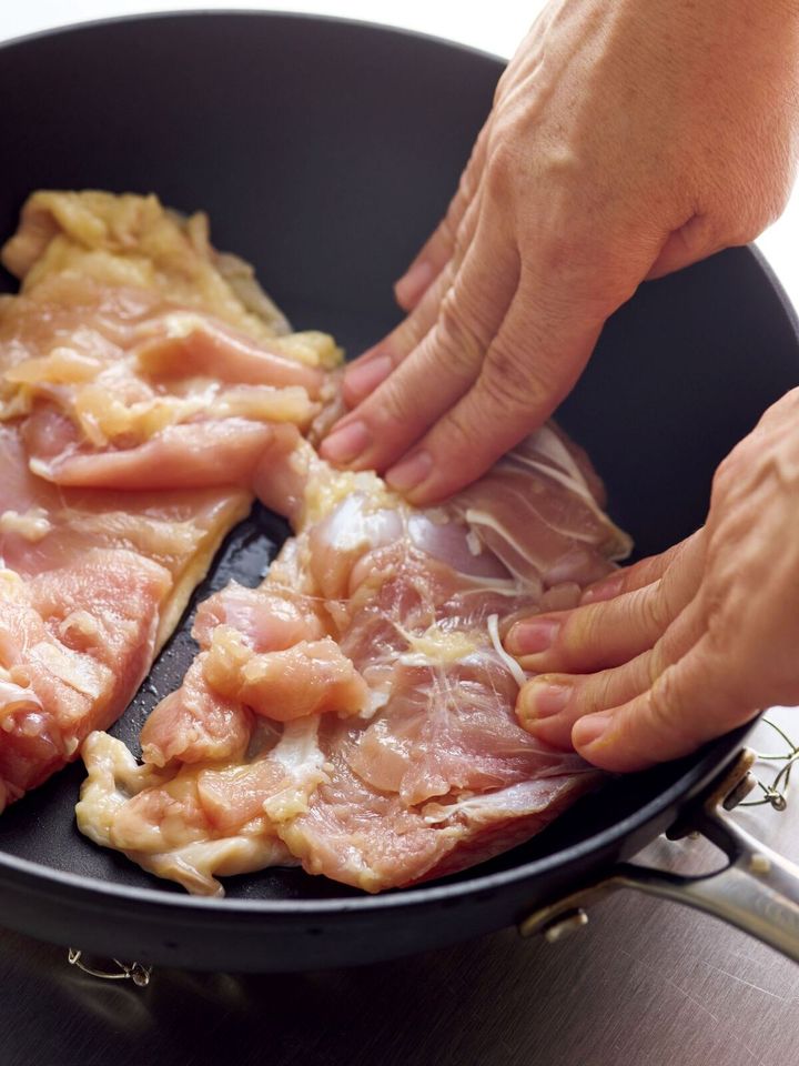 鶏肉に加熱している事を気づかせないくらい弱火でじわじわ焼く⁉チキンソテープロのコツ