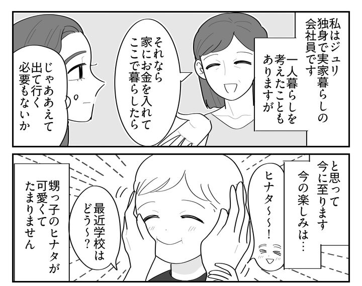 私はジュリ(35歳)。会社勤めをしながら実家で暮らしています。実家の隣には弟・ダイチ(32歳)の家族4人が住んでいて、ヒナタ(8歳)とユメちゃん(1歳)がいます。私は懐いてくれている甥っ子のヒナタが可愛くてたまりません。ソフトボールをはじめるのに送迎が必要だと言うので、私が練習や試合へ車を出してあげることになりました。ダイチの妻レイナさん(33歳)はユメちゃんの世話で手一杯だろうから、フォローできたらと思っていたのですが……。