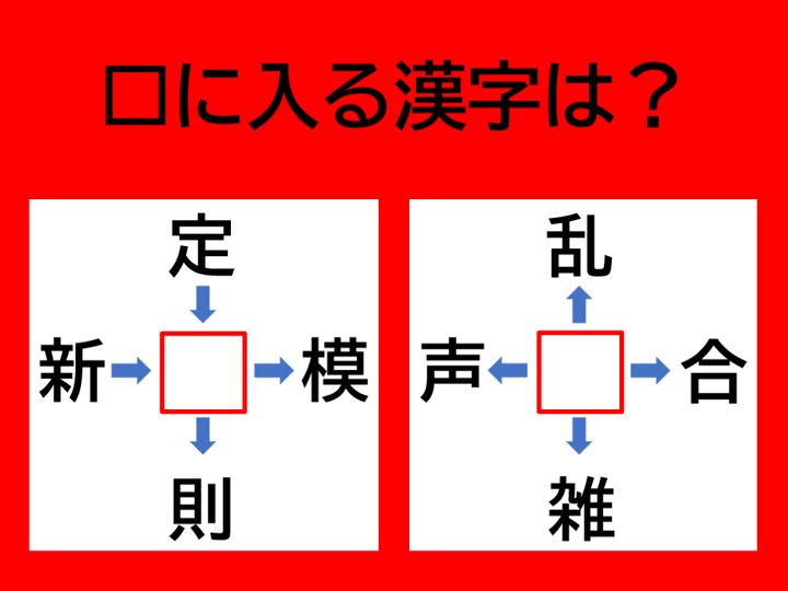 【漢字パズル】脳トレに挑戦!定□、新□、□則、□模、に入る漢字は何?