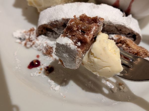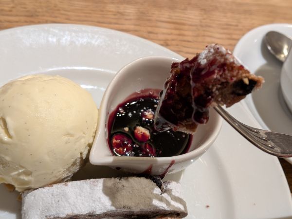バニラビーンズがたっぷりのアイスクリームと味わうのもあり、赤ワインソースをアイスクリームにかけて楽しむのもあり、お店でいただくからこそできる、様々な食べ方の醍醐味を堪能しました。