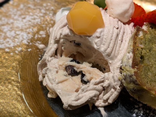 黒豆ときな粉のアイスクリームは、口どけ滑らかで優しい味わい。シュトーレンと一緒に食べると、日本人の舌にしっくりとくる、黄金コンビでした。あまおうの酸味を途中に挟みながら、最後まで美味しくいただきました。