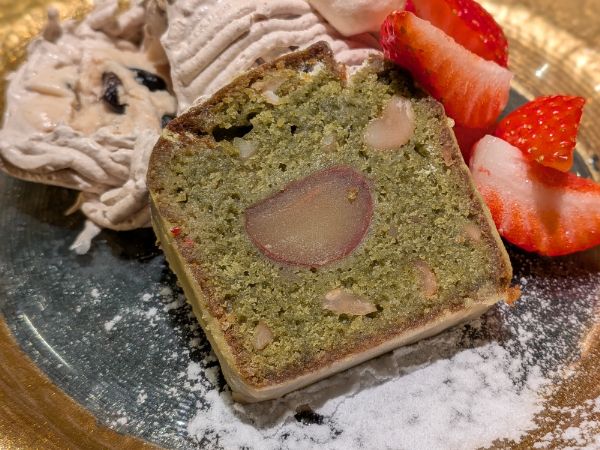 コラボにあたり工夫した点をお伺いしました。「シュトーレンそのものが抹茶と栗という和のシュトーレンなので、それに合うよう和の食材や酸味のあるあまおうを添えることで、シュトーレン本来の味わいを引き立てました。」と佐々木店長。