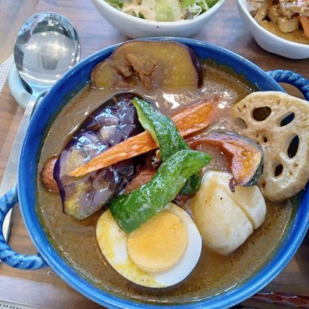 店主さんが田んぼで作られた新米のごはんを浸してパクリ。今でも思い出すと口がスープカレーを求めてしまいます。 カレー自体はさっぱりで揚げ野菜でよりまろやかなおいしさ。次回はオムレツにしたいけど、またリピしそうです。