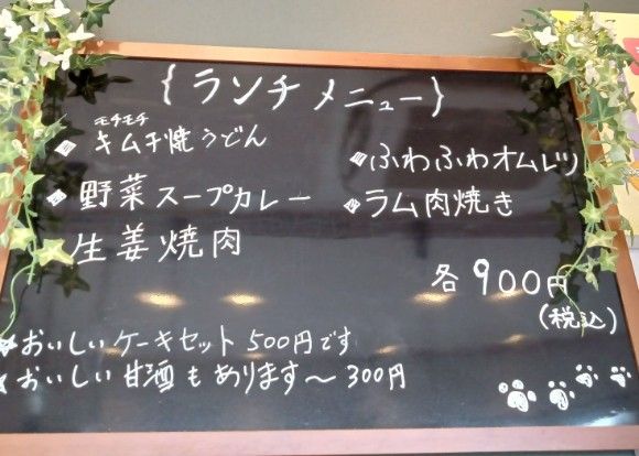 定番メニュー5種類と定期的に替わるメニューが1種類。 ケーキセットはお得な500円。
