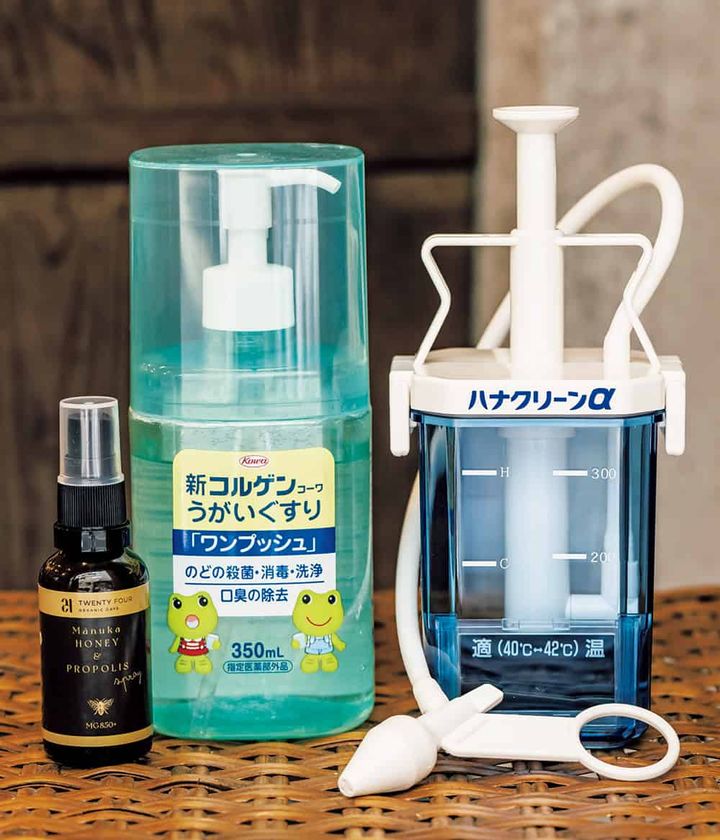 私の喉ケア3点セット。喉はどれだけ労っても労りすぎることはなく、特にマヌカ&プロポリススプレーは即効性もあって手放せません。