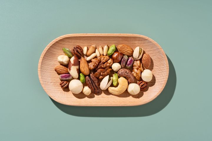 心臓の健康全般に役立つ食物繊維を供給するナッツ類。ピーナッツ、アーモンド、ピスタチオには抗酸化物質と抗炎症成分が含まれており、これらはLDL値を低下させ、HDL値の維持をサポートすることで、コレステロール値の改善に寄与する可能性が研究で示されている。