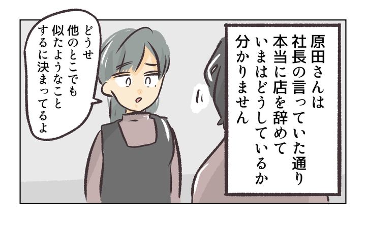 社長によると、原田は店を辞めることになり、れおぱさんが働いていた店は閉めることになったという。