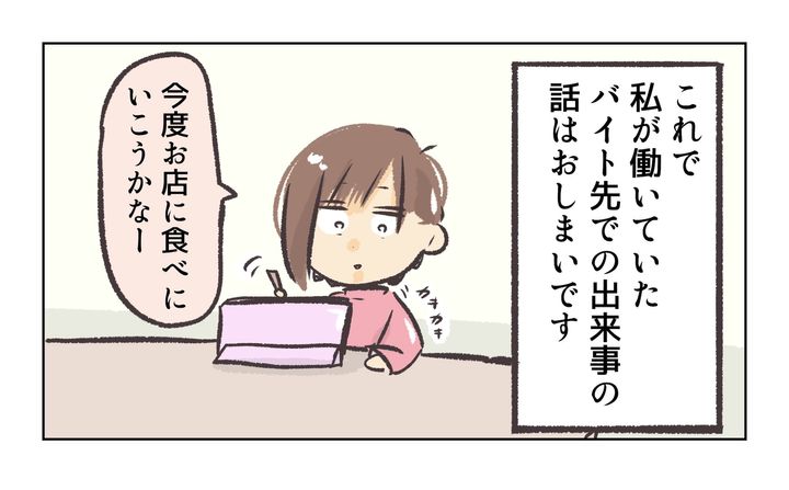 れおぱさんが10代の頃にバイト先の飲食店で浮気現場に遭遇した話を漫画化。【最終話】