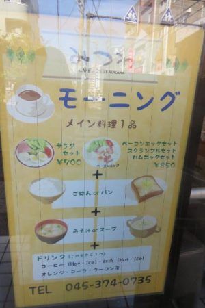 メニューを検索すると、ポイントサイトで予約可能な時間且つ土日祝日でもモーニングメニューが利用可能な事が分かりました。「夫が休みの朝食の時間帯なら1人でゆっくり出来そう」と思い、お店に伺う事を決め、予約しました。 「洋食レストランみつわ」は、相鉄線「鶴ヶ峰駅」北口から徒歩約3分です。北口の階段を下りて目の前の道を直進すると、左手に踏切がある十字路に突き当たります。その十字路を向こう側へ渡り、左手に見える「ミスタードーナツ」のお隣に興味をそそられる食品サンプルの飾られているお店があります。