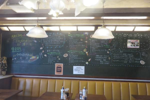 店内の様子が見え過ぎないように、所々メニューの紹介が張られています。