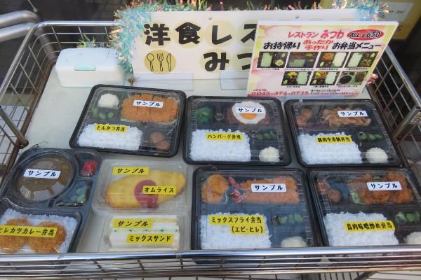 お値段もコンビニで購入出来るコーヒーと同じ位で良心的です。食事のついでに午後の一杯を購入する等、使い勝手が良さそうです。大きな窓の前には、お弁当のサンプルが置かれていました。