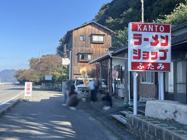 開店と同時に、訪れる人が絶えないお店。14時ごろ、再訪問したところ10人ほどの方が外で待機中でした。 地元の方や観光客、お仕事中の方が訪れている、海沿いの人気ラーメン店「ラーメンショップふたみ」。