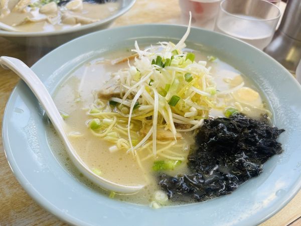 「とんこつネギラーメン」 上の息子が選んだこちらのラーメンのチャーシューは角切りタイプ。優しい味のとんこつラーメンの美味しさは、息子の胃袋を掴み「また食べたい!このお店にまた来たい!」とお店の雰囲気込みで虜になっていました。