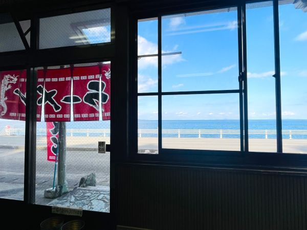 店内からは、ごらんのように海を眺めることができます。食べ終わって外に出るときに、目の前に広がる海の風景はここだけのもの。 この景色込みで、ラーメンを楽しみにくる方も多いようです。