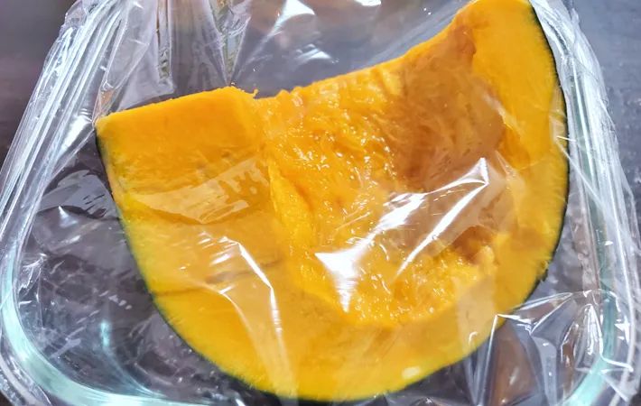 加熱時間は目安なので、カボチャの大きさや、電子レンジのワット数などによって調節してくださいね。