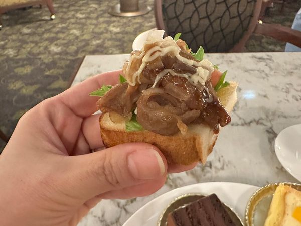 今回は内覧会ということで、メニューの一部を試食用サイズでいただきました。「照り焼きサンドイッチ」は香ばしい照り焼きソースがやさしく香る“大人の照り焼き”。「アトランティックサーモンサンドイッチ」はしっとりしたサーモンの爽やかなうま味が堪能できます。後味が軽いので、いくらでも食べられそう。