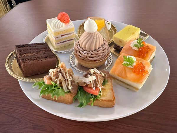 王道の「ショートケーキ」や栗の風味が豊かな「モンブラン」など、どれも素材の良さが際立ち、甘さ控えめで上品な味です。紅茶やコーヒーもブランドや産地にこだわっているそうで、香り高く、スイーツとのペアリングは最高! また、アフタヌーンティーは和と洋を融合させた上質なスイーツがお重スタイルで提供されるそうです。