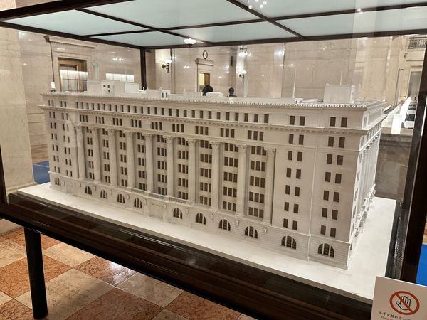 リニューアルで拡充された1階の展示エリアでは、昭和初期の貴重な未公開資料や明治生命館の模型などを展示。建物の歴史や設計者の想いを感じることができます。