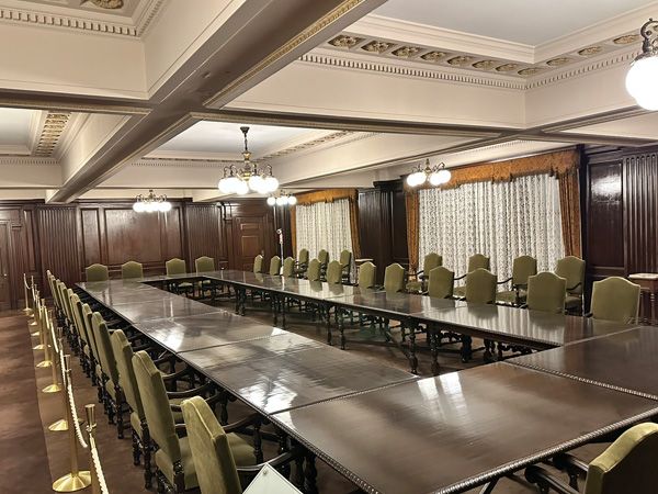 ひときわ大きくて厳かな会議室。終戦後、ここで米、英、中、ソ連の4カ国の代表が集まり、日本の未来を話し合ったそうです。ダグラス・マッカーサーもこの場所で演説を行ったといわれています。