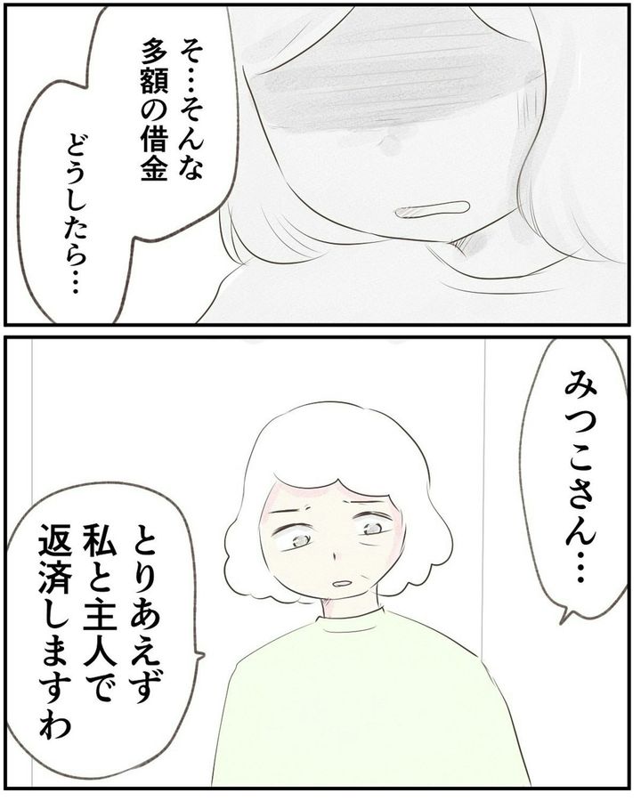 みつこさんは断り切れず、夫と借金を返す道を選んでしまいます。夫婦とはいえ、夫が作った借金を返済しなくてはいけないなんて、納得できませんよね。