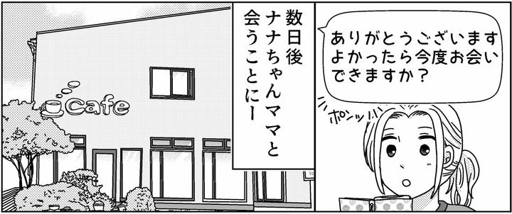 後日、私はナナちゃんママとカフェで待ち合わせをしました。保護者会などで何度か挨拶をしたことはありますが、個人的に会うのは初めて。しかもややケンカ腰のラインをしたばかりです。少しだけ緊張していました。私たちはお互いに頭を下げて、今回の出来事について素直に話すことができました。