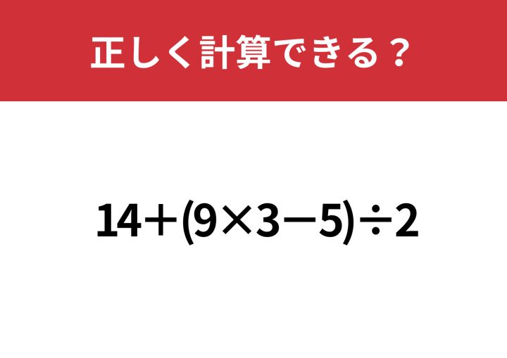 正解できれば基本は完璧!「14+(9×3−5)÷2」正しく計算できる?