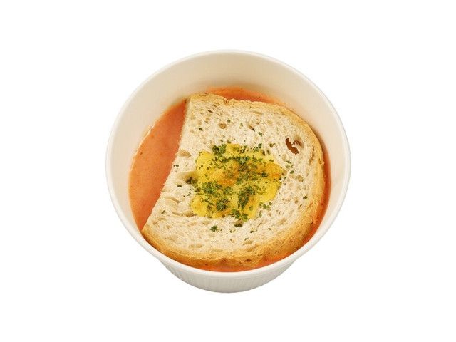 旨味のある海老のビスクスープと、チーズブレッドを合わせました。マカロニをトッピングした食べ応えのあるスープです。 取り扱い店舗 全エリア